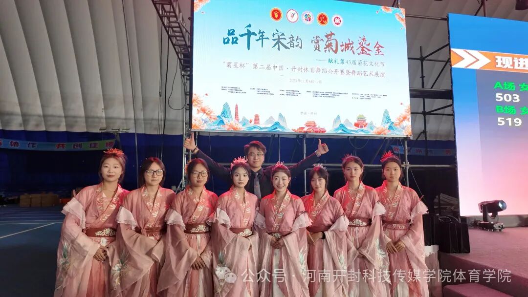 2025年11月8日至9日,为期两天的第二届中国·开封体育舞蹈公开赛在八朝古都开封隆重举行。赛事由开封市体育舞蹈运动协会协会主办,中国体育舞蹈联合会确认,河南省体育舞蹈运动协会、河南省新的社会阶层人士联谊会指导,并得到了开封市工商业联合会、开封市文学艺术界联合会等多家单位的大力支持。河南开封科技传媒学院为协办单位,体育学院青年志愿者协会组织40余名志愿者开展专项志愿服务,以专业高效的保障为这场体育盛会增添了底色。