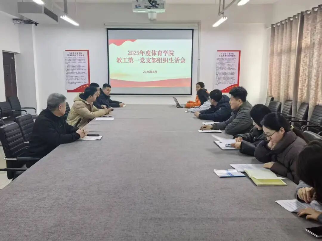2026年3月10日,体育学院教工第一党支部在9318会议室开展2025年度组织生活会。会议紧扣主题,确保会议主题鲜明,严肃党内政治生活。