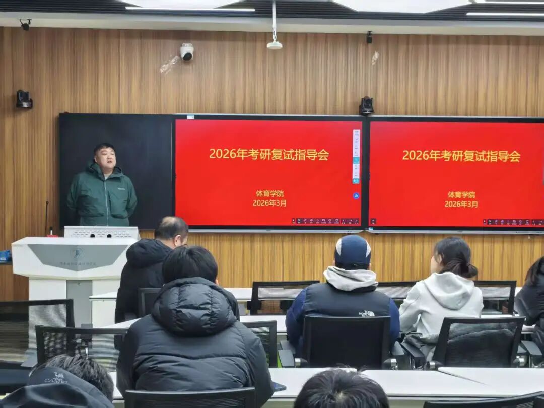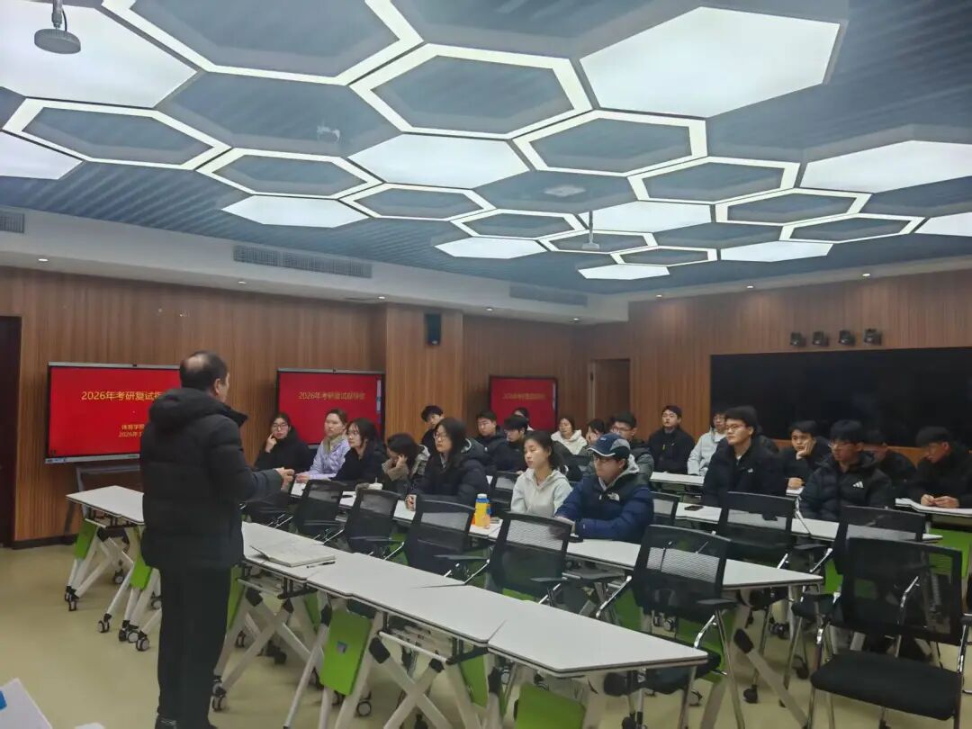 为助力2026届考研学子精准把握复试动态、提升复试竞争力,体育学院精心组织考研复试指导会,由辅导员李开主持,特邀专家、教研室老师及辅导员现场指导。